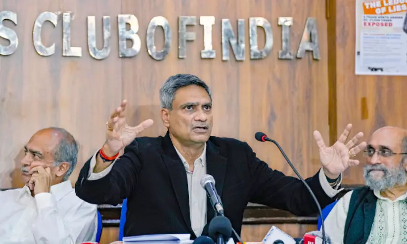 text_fieldsഅനിൽ അംബാനിയുടെ സാമ്പത്തിക തട്ടിപ്പ് സംബന്ധിച്ച റിപ്പോർട്ട് പുറത്തുവിട്ട് കോബ്രപോസ്റ്റ് സ്ഥാപകനും ചീഫ് എഡിറ്ററുമായ അനിരുദ്ധ് ബഹൽ ഡൽഹിയിൽ വാർത്താസമ്മേളനം നടത്തുന്നു. പ്രശാന്ത് ഭൂഷൺ, പരഞ്ജോയ് ഗുഹ താക്കൂർത്ത എന്നിവർ സമീപം