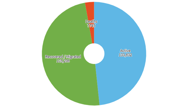 text_fieldsന്യൂഡൽഹി: കോവിഡ് പടർന്നുപിടിക്കുന്നതിനിടയിലും ഇന്ത്യക്ക് ആശ്വാസമായി കണക്കുകൾ. ഇന്ത്യയിൽ നിലവിൽ കോവിഡ് കേസുകളേക്കാൾ കൂടുതൽ രോഗമുക്തരായവരാണുള്ളത്. ആകെ 2,76,583 കേസുകൾ റിപ്പോർട്ട് ചെയ്തതിൽ നിലവിൽ രോഗികളായി തുടരുന്നവർ 1,33,632 എണ്ണമാണ്. എന്നാൽ 1,35,206 പേർ രോഗമുക്തരായി. ഇന്ത്യയിൽ രോഗമുക്തരുടെ എണ്ണം രോഗികളേക്കാൾ കൂടുതലാകുന്നത് ഇതാദ്യമായാണ്. 7754പേരാണ് ഇതുവരെ ഇന്ത്യയിൽ മരണമടഞ്ഞത്.