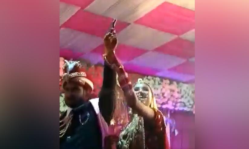 വിവാഹ ചടങ്ങിനിടെ ആകാശത്തേക്ക് വെടിയുതിർത്ത് വധൂവരൻമാർ; അന്വേഷണം -വിഡിയോ