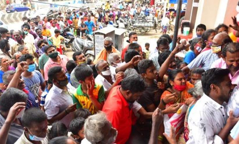 ഒരു ഘട്ടത്തിൽ 300ഓളം പേർ കടക്ക് മുന്നിൽ അഞ്ച് പൈസയും കൊണ്ട് കൂടിനിൽക്കുന്ന സാഹചര്യമായി. കോവിഡ് നിയന്ത്രണങ്ങൾ നിലനിൽക്കേയായിരുന്നു ഈ കൂട്ടംചേരൽ. ഇതോടെ പൊലീസ് ഇടപെട്ടു.