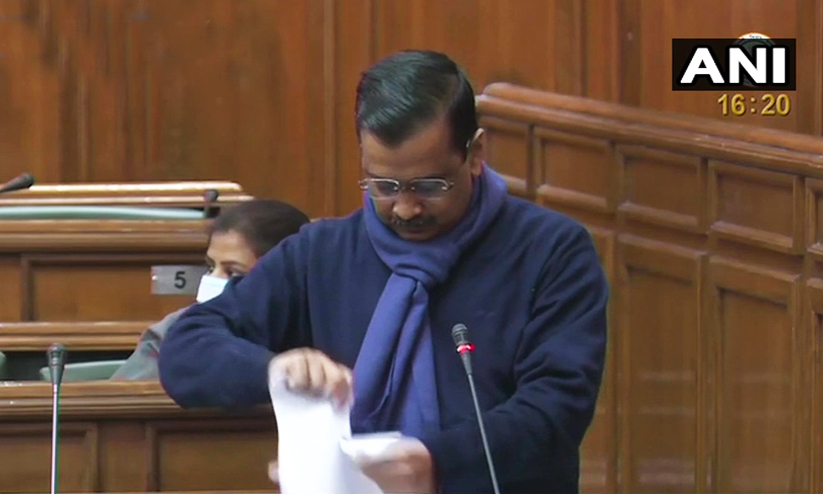 കർഷക പ്രക്ഷോഭത്തിന് പിന്തുണ; വിവാദ നിയമത്തിന്റെ പകർപ്പ് കെജ് രിവാൾ കീറിയെറിഞ്ഞു
