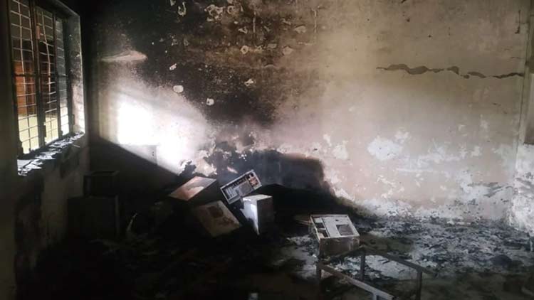 കൂട്ടമായെത്തിയ അക്രമികൾ അധ്യാപകരുടെ മുറിയിലെത്തി ഫയലുകളും പുസ്തകങ്ങളുമെല്ലാം വലിച്ചുവാരിയിട്ടു. പിന്നീടാണ് തീ കൊളുത്തിയത്. എരിയാതെ ബാക്കിയായവ ശേഖരിക്കുകയാണിപ്പോൾ അധ്യാപകരും ജീവനക്കാരും.