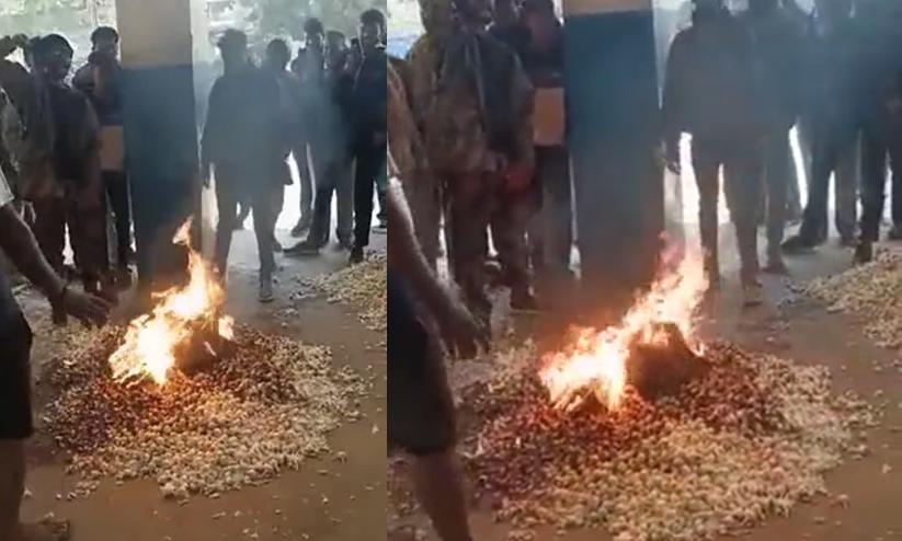 ന്യായവില കിട്ടിയില്ല; വെളുത്തുള്ളി കൂട്ടിയിട്ട് കത്തിച്ച് പ്രതിഷേധിച്ച് യുവകർഷകൻ -വിഡിയോ