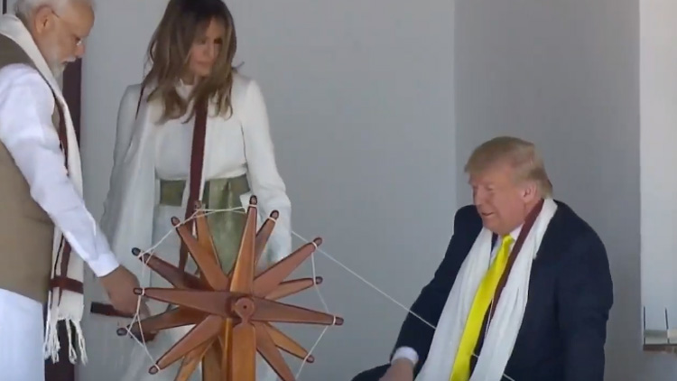 12.15 PM - സബർമതി ആശ്രമത്തിൽ നൂൽ നൂറ്റ് ട്രംപ്