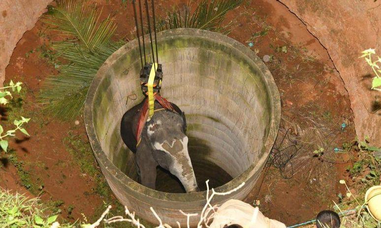 50 അടി താഴ്ചയിൽ 16 മണിക്കൂർ; കുട്ടിയാന ജീവനോടെ പുറത്തേക്ക്