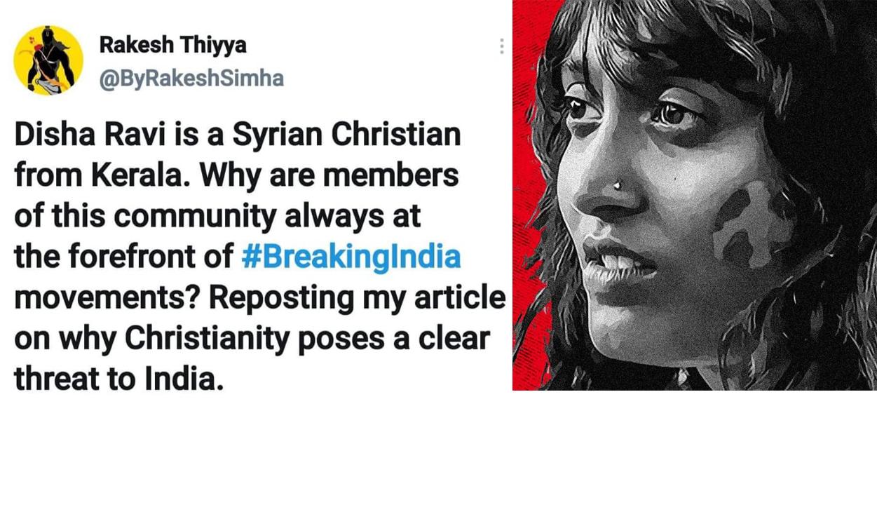 'ദിഷ രവി ക്രിസ്ത്യൻ മലയാളി, ക്രിസ്ത്യാനികൾ പണ്ടേ രാജ്യത്തിന് ആപത്ത്'; സംഘപരിവാർ പ്രചാരണത്തിന്റെ വസ്തുത എന്താണ്?
