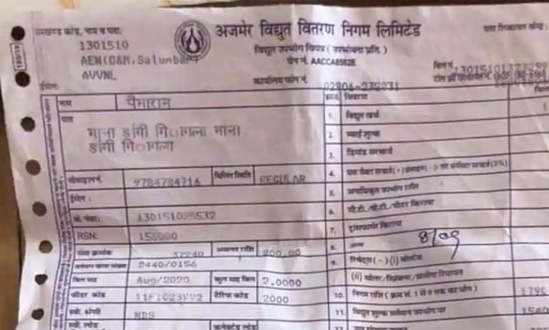 text_fieldsജയ്പൂർ: രാജസ്ഥാനിലെ കർഷകന് രണ്ട് മാസത്തേക്ക് വൈദ്യുതി ബില്ലായി ലഭിച്ചത് 3.71 കോടി രൂപ. ഉദയ്പൂരിലെ ജിങ്കലാ ഗ്രാമത്തിലെ കർഷകനായി പേമാരാം പേട്ടലിനാണ് വൻ തുക ബില്ലായി വന്നത്.