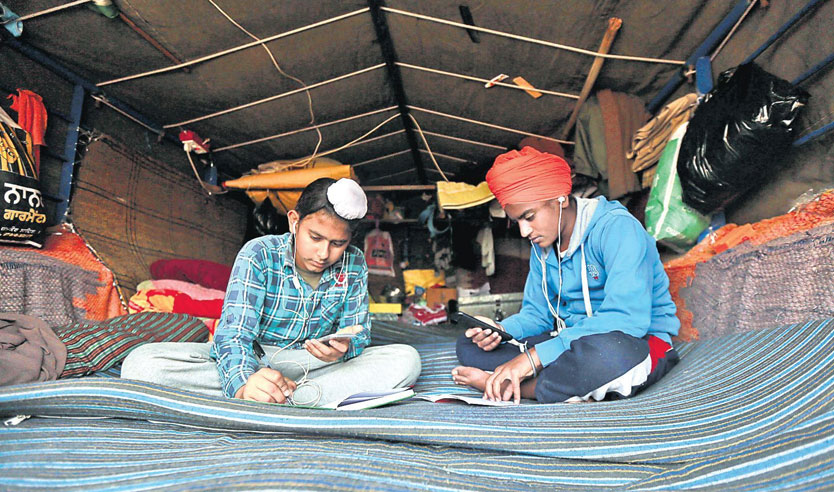 നിയമങ്ങൾ പിൻവലിച്ചാൽ തിരിച്ചുപോകുമെന്ന് പറഞ്ഞ് ഹർമാൻ സംസാരിച്ചുതുടങ്ങി. മോദി സർക്കാർ പിൻവലിക്കുമെന്ന് േതാന്നുന്നുണ്ടോ എന്ന് ചോദിച്ചപ്പോൾ തരേണ്ടിവരുമെന്നും തരാതെ ഇവിടം വിട്ടുപോകില്ലെന്നും അവൻ തറപ്പിച്ചുപറഞ്ഞു. പഠനമൊക്കെ ഒഴിവാക്കിയാണോ സമരത്തിന് വന്നിരിക്കുന്നതെന്ന് ചോദിച്ചപ്പോൾ എന്തിന് പഠനമൊഴിവാക്കണമെന്നവൻ തിരിച്ചുചോദിച്ചു. സമരസ്ഥലത്ത് പഠനത്തിന് ഒരു മുടക്കവുമില്ല. സ്കൂളിൽ ഒാൺലെൻ ക്ലാസുകളായത് അനുഗ്രഹമായി. ക്ലാസിന് നേരമാകുേമ്പാൾ ട്രാക്ടറിലേക്ക് തിരിച്ചുവരും. പിന്നീട് ക്ലാസും വർക്കും കഴിഞ്ഞേ പോകു. അച്ഛനും അമ്മാവനുമെല്ലാം കൃഷിക്കാരാണ്. കൃഷിയിൽ നിന്നു കിട്ടുന്നതുകൊണ്ടാണ് ഞങ്ങളുടെ പഠനവും. കൃഷി നഷ്ടത്തിലായാൽ പിന്നെ ഞങ്ങളെങ്ങനെ പഠിക്കുമെന്ന് ഒമ്പതാം ക്ലാസുകാരൻ ചോദിച്ചു. ഒാൺലൈനിൽ കിട്ടുന്ന പാഠങ്ങളേക്കാൾ എത്രയോ മികച്ചതാണ് തങ്ങളുടെ മക്കൾക്ക് സമരഭൂമിയിൽനിന്ന് കിട്ടുന്ന ഇൗ ജീവിതപാഠങ്ങളെന്ന് അമ്മാവൻ പറഞ്ഞപ്പോൾ ഹർമാൻ സിങ്ങിെൻറ മുഖത്ത് അഭിമാനം.