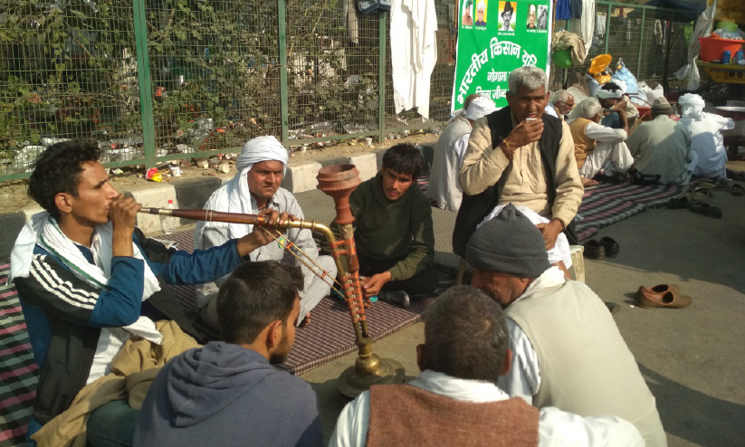 ഹരിയാനയിലെ ഒാരോ ഗ്രാമത്തിൽ നിന്നുള്ള ഖാപ് പഞ്ചായത്തുകളും പ്രത്യേകം പന്തലുകളിട്ട് ഹുക്ക വലിക്കാനുള്ള സൗകര്യമൊരുക്കിയിട്ടുണ്ട്. മുന്നിലെത്തുന്ന അപരിചിതനായ ഏതൊരാളെയും ആദ്യം ഹുക്ക വെച്ചു നീട്ടിയാണവർ സൽക്കരിക്കുന്നത്. കാർഷിക ബില്ലുകൾക്കെതിരായ ജീവന്മരണ പോരാട്ടത്തിൽ കൊറോണപ്പേടിയില്ലാതായതോടെ മുഖപടവും സമൂഹ അകലവുമില്ലാത്ത സമരഭൂമിയിൽ ഒരേ ഹുക്കയിൽനിന്ന് മാറി മാറി പുക നുകർന്നുകൊണ്ടിരിക്കുകയാണ് സമരക്കാർ.