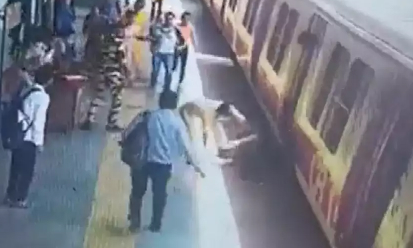 ഓടുന്ന ട്രെയിനിൽ നിന്ന് തെറിച്ചുവീണു; യാത്രക്കാരന്റെ ജീവൻ രക്ഷിച്ച് ആർ.പി.എഫ്- വൈറലായി ദൃശ്യങ്ങൾ