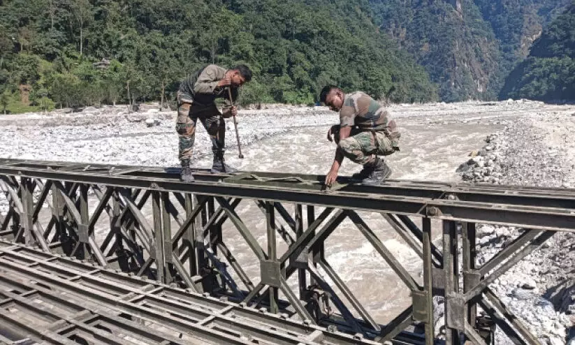 സിക്കിം പ്രളയം: സൈന്യത്തിന്റെ സഹായത്തോടെ താൽക്കാലിക പാലം