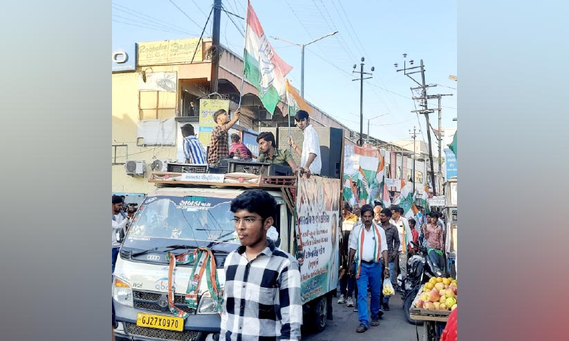 ഗുജറാത്തിലെ പ്രമുഖ കോൺഗ്രസ് നേതാവായ ശക്തി സിങ് കോഹിലിന്റെ പ്രചാരണ പൊതുയോഗം കഴിഞ്ഞാണ് ഡി.ജെയുമായുള്ള പ്രവർത്തകരുടെ നഗരപ്രദക്ഷിണം. പേക്ഷ, മധ്യവയസ്കരായ പ്രവർത്തകരല്ലാതെ ചെറുപ്പക്കാരധികമില്ല. അത്യാവശ്യം പണമിറക്കി നടത്തുന്ന 'ഭാരത് ജോഡോ യാത്ര'ക്കിടയിലും ബി.ജെ.പിയെയും ആം ആദ്മി പാർട്ടിയെയുംപോലെ ഗുജറാത്തിൽ പണിയെടുക്കാൻ തങ്ങൾക്ക് പണമില്ലെന്ന് പരസ്യമായി പറയുകയാണ് കോൺഗ്രസ് നേതാക്കൾ.