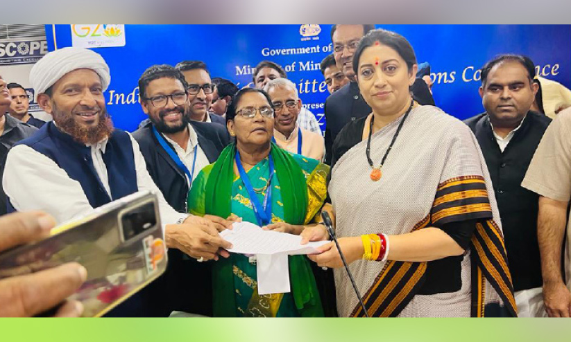 text_fields2023ലെ ഹജ്ജ് തീർഥാടന നയത്തിലേക്ക് കേരള ഹജ്ജ് കമ്മിറ്റിയുടെ നിർദേശങ്ങൾ കേന്ദ്ര ഹജ്ജ് മന്ത്രി സ്മൃതി ഇറാനിക്ക് സംസ്ഥാന ഹജ്ജ് കമ്മിറ്റി ചെയർമാൻ സി. മുഹമ്മദ് ഫൈസി നൽകുന്നു