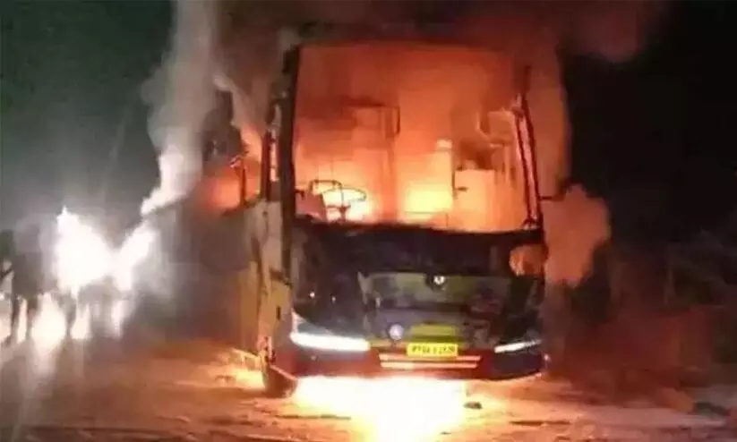 text_fieldsഹൈദരാബാദ്: ആന്ധ്രപ്രദേശിലെ കർണൂലിൽ 19 യാത്രാക്കാർ വെന്തുമരിച്ച ബസപകടത്തിന്റെ തീവ്രത കൂട്ടിയത് റിയൽമി സ്മാർട്ട് ഫോണുകളാണെന്ന് സംശയം ഉയരുന്നു. കർണൂൾ ബസ് തീപിടുത്ത കേസിന്റെ അന്വേഷണം പുരോഗമിക്കുന്നതിനിടെയാണ് പൊട്ടിത്തെറിച്ച ബസിനുള്ളിൽ 234 റിയൽമി സ്മാർട്ട്ഫോണുകൾ ഉണ്ടായിരുന്നുവെന്ന വിവരം പുറത്തുവന്നത്.