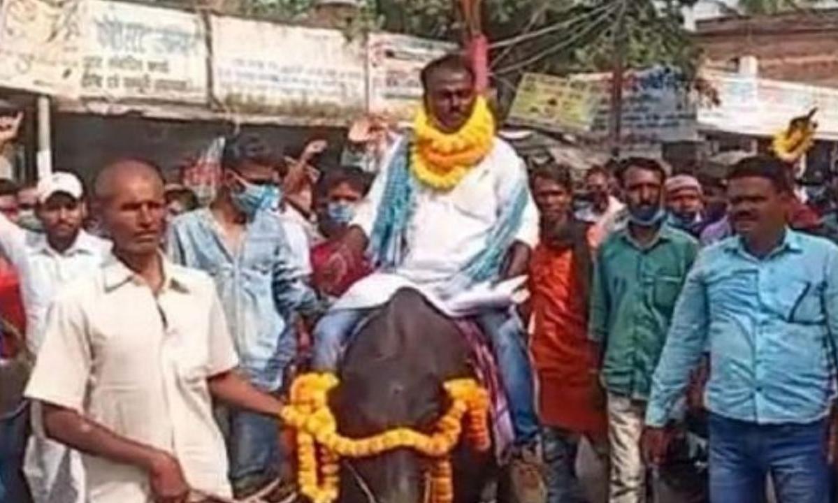 നാമനിർദേശ പത്രിക സമർപ്പിക്കാൻ സ്ഥാനാർഥി എത്തിയത് പോത്തിെൻറ പുറത്ത്; കാർ ഇല്ലാത്തതുകൊണ്ടെന്നും വാദം