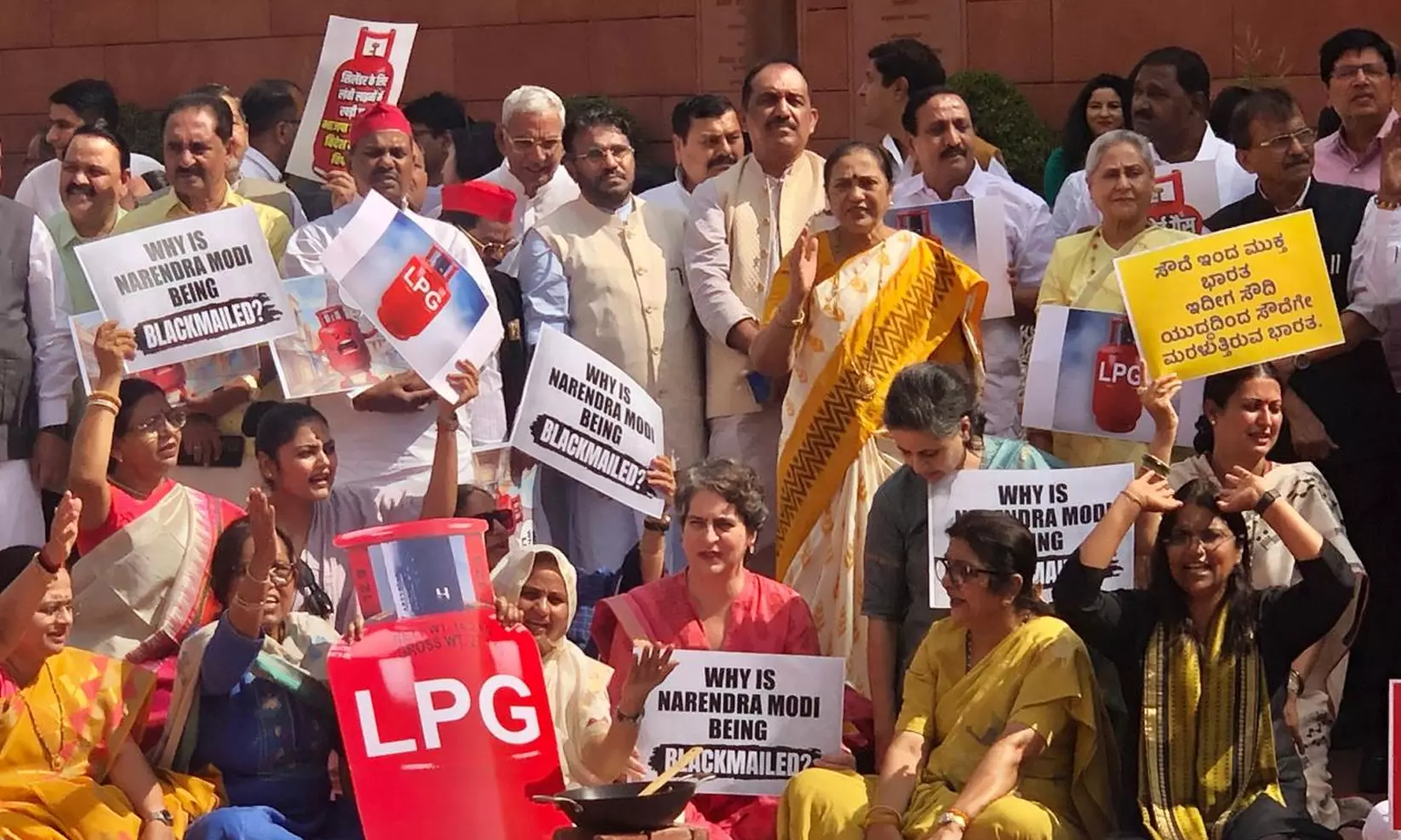 ഗ്യാസ് ക്ഷാമം ‘കത്തുന്നു’; പാർലമെന്റിന് മുന്നിൽ പ്രതിഷേധവുമായി എം.പിമാർ, അടിയന്തര നടപടി വേണമെന്ന് കെ.സി. വേണുഗോപാൽ
