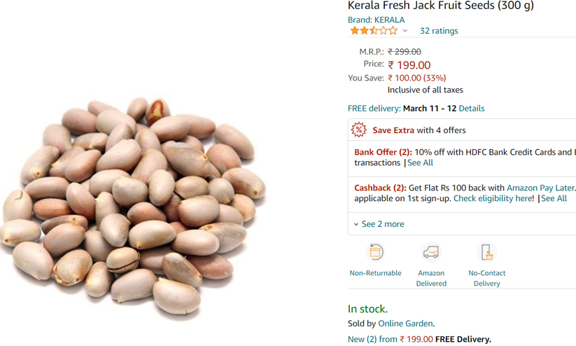 ചക്കക്കുരുവിന് ആമസോണിൽ ഇപ്പോൾ വിലക്കുറവുണ്ട്; കിലോക്ക് 663 രൂപ മാത്രം..!