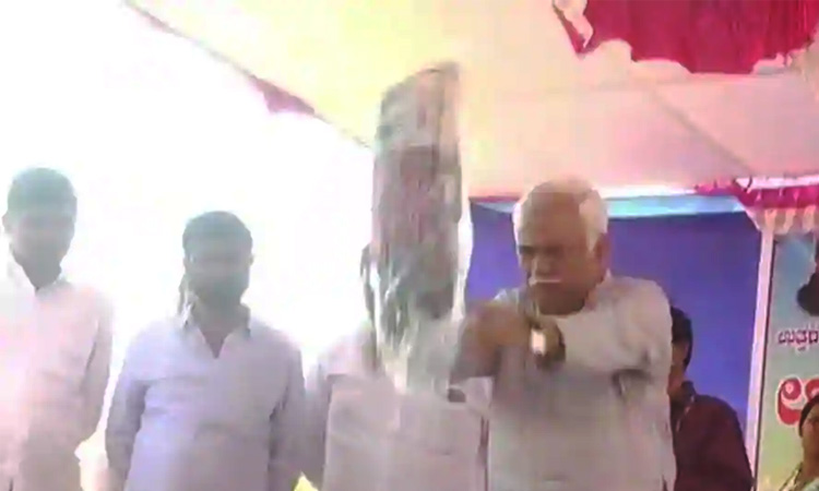 കായിക താരങ്ങൾക്കുള്ള കിറ്റ് എറിഞ്ഞു നൽകി കർണാടക മന്ത്രി; വിഡിയോ വൈറൽ video