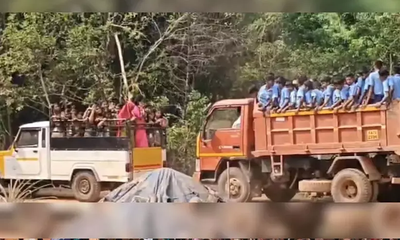 നിർമാണ സാധനങ്ങൾ കൊണ്ടുപോകാൻ ഉപയോഗിക്കുന്ന ഓപ്പൺ ടിപ്പറിലായിരുന്നു വിദ്യാർഥികളുടെ യാത്ര. യാതൊരുവിധ സുരക്ഷാമുൻകരുതലുമില്ലാതെയാണ് വിദ്യാർഥികളെ കൊണ്ടു പോയത്. സംഭവത്തിന്റെ ദൃശ്യങ്ങൾ വന്നതോടെ വലിയ പ്രതിഷേധം ഇക്കാര്യത്തിൽ ഉയരുകയായിരുന്നു. സുരക്ഷയില്ലാതെ വിദ്യാർഥികളെ കൊണ്ടു പോയതിൽ പ്രതിഷേധവുമായി രക്ഷിതാക്കൾ രംഗത്തെത്തി.