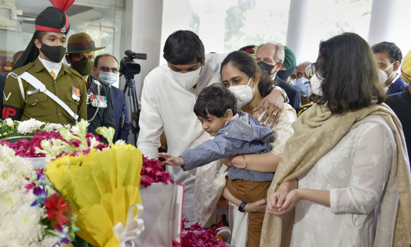 text_fieldsസംയുക്ത സേനാമേധാവി ജനറൽ ബിപിൻ റാവത്തിെൻറയും പത്നി മധുലിക റാവത്തിെൻറയും മൃതദേഹങ്ങൾക്കരികിൽ മക്കളായ തരിണിയും കൃതികയും പേരമകനും മറ്റു കുടുംബാംഗങ്ങളും