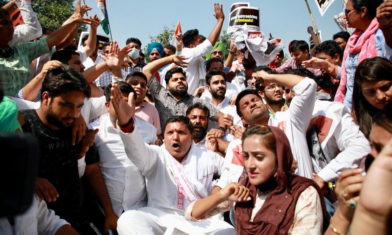 അമിത് ഷായുടെ വസതിക്ക് മുന്നിൽ യൂത്ത് കോൺഗ്രസ് പ്രതിഷേധം