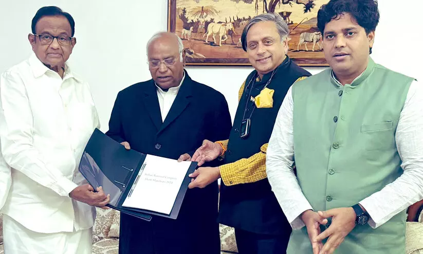 ലോക്സഭാ തെരഞ്ഞെടുപ്പ്: പ്രകടന പത്രികയുടെ കരട് പാർട്ടി അധ്യക്ഷൻ ഖാർഗെക്ക് കൈമാറി
