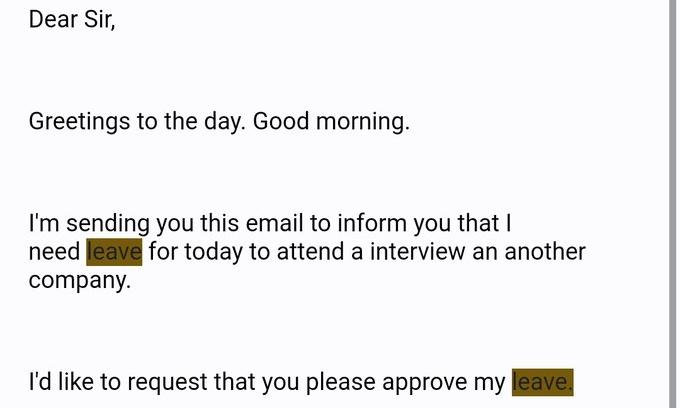 മറെറാരു കമ്പനിയിൽ ഇന്റർവ്യൂവിന് പോകാൻ സ്ഥാപന മേധാവിക്ക് ലീവ് അപേക്ഷിച്ച് ജൂനിയർ ഓഫിസർ
