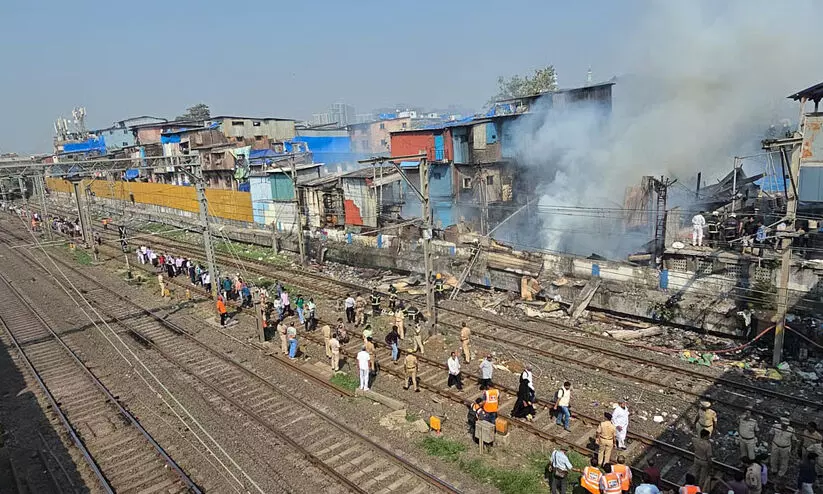 മുംബൈയിൽ ധാരാവിയിലെ റെയിൽവെ സ്റ്റേഷന് സമീപം വൻ തീപിടുത്തം; ഹാർബർ ലൈൻ ട്രെയിൻ സർവിസുകൾ നിർത്തിവെച്ചു