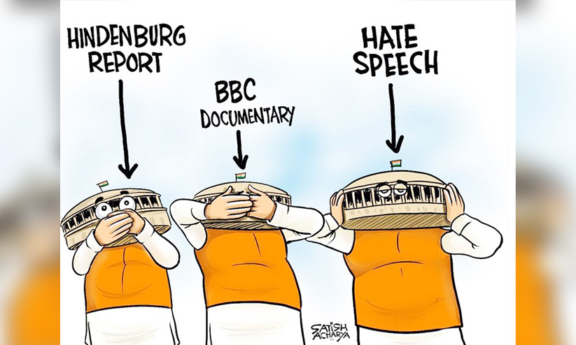 അദാനി, ഹിൻഡൻബർഗ്, ഓഹരി വിപണിയിലെ ചാഞ്ചാട്ടം എന്നിവയുമായി ബന്ധപ്പെട്ട കാതലായ ചോദ്യങ്ങൾക്കൊന്നും സർക്കാർ മറുപടി പറഞ്ഞിട്ടില്ല. ഏതോ ഒരു കമ്പനിയുടെ കാര്യമെന്ന മട്ട്. പാർലമെന്റിൽ ചർച്ച അനുവദിച്ചില്ല. അന്വേഷണത്തിന് തയാറല്ല. എൽ.ഐ.സി, സ്റ്റേറ്റ് ബാങ്ക് ഓഫ് ഇന്ത്യ തുടങ്ങി പൊതുമേഖല സ്ഥാപനങ്ങളുടെ പണം മുതൽ കള്ളപ്പണ ഇടപാടുവരെ കെട്ടുപ്പിണഞ്ഞു കിടക്കുന്ന വിഷയത്തിലാണ് ഈ സമീപനം. ചോദ്യങ്ങളെല്ലാം പുച്ഛത്തോടെ എഴുതിത്തള്ളി, ചോദ്യമുന്നയിച്ചവരെ കൂട്ടത്തോടെ നേരിടുന്നതായിരുന്നു കഴിഞ്ഞ ദിവസങ്ങളിലെ കാഴ്ച.