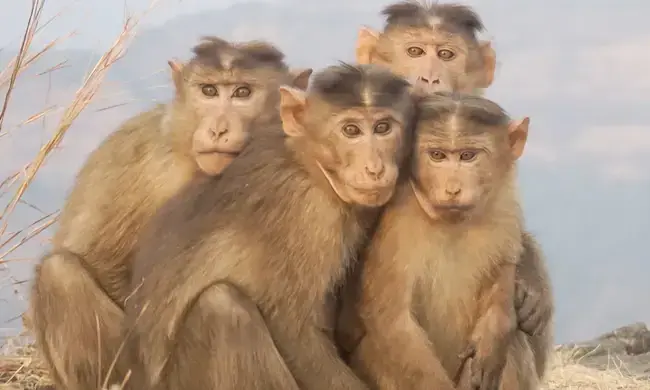 പൂർണവളർച്ചയെത്തിയ രണ്ട് കുരങ്ങുകൾ, ഓരോന്നും കുഞ്ഞിനെ പുറകിൽ ചുമന്ന്, പരസ്പരം വന്ന് കെട്ടിപ്പിടിക്കുന്നത് വീഡിയോയിൽ കാണാം. ഒരു കുരങ്ങൻ കുഞ്ഞിനെ മറ്റൊന്നിൽ നിന്ന് എടുക്കുന്നു. അവയെല്ലാം പരസ്പരം ആലിംഗനം ചെയ്യുന്നു.