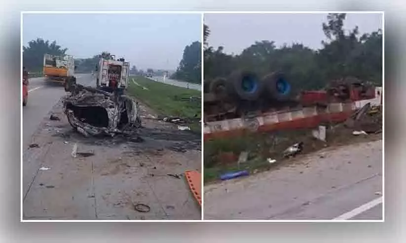 ബെംഗലൂരുവിൽ കാർ ട്രക്കുമായി കൂട്ടിയിടിച്ചുണ്ടായ അപകടത്തിൽ അമ്മക്കും പിഞ്ചുകുഞ്ഞിനും ദാരുണാന്ത്യം