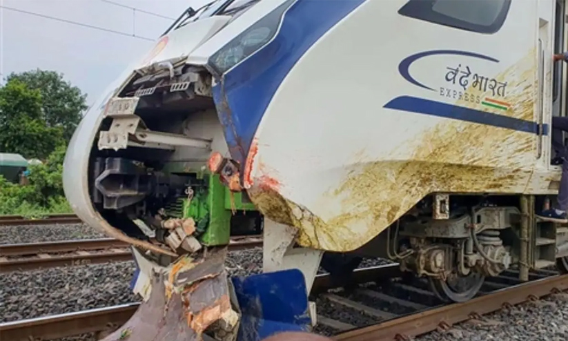 കന്നുകാലികളെ ഇടിച്ച് വന്ദേ ഭാരത് എക്സ്പ്രസിന്റെ എഞ്ചിൻ ഭാഗം തകർന്നു