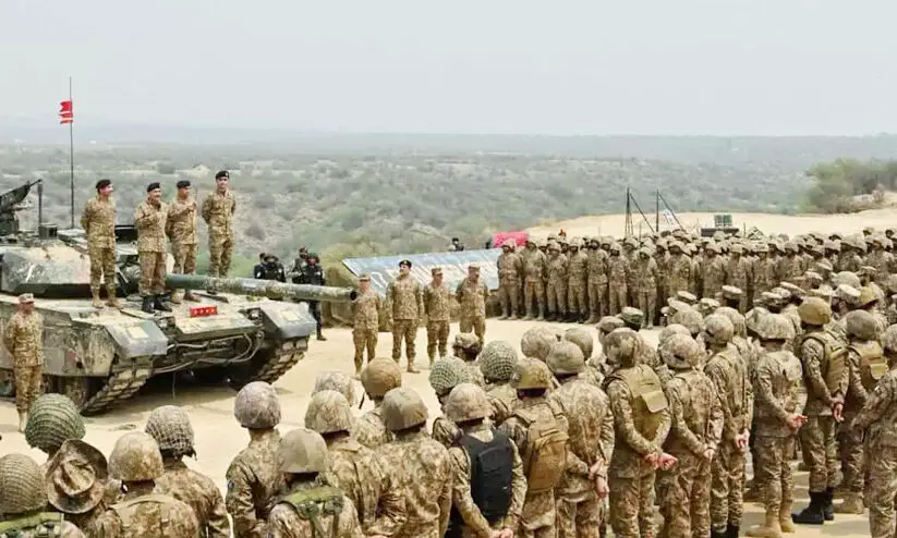 text_fieldsഹൈദരാബാദ്: പഹൽഗാം ഭീകരാക്രമണത്തെ തുടർന്ന് ഇന്ത്യ നടപടികൾ കടുപ്പിച്ചതിന് പിന്നാലെ പ്രകോപനം തുടർന്ന് പാകിസ്താൻ. അതിർത്തിയിൽ സൈനിക സാന്നിധ്യം വർധിപ്പിച്ചാണ് പാക് പ്രകോപനം. രാജസ്ഥാനിലെ ബാർമറിലെ ലോംഗേവാല സെക്ടറിലുടനീളം പാക് സൈന്യം റഡാർ ഉപകരണങ്ങളും വ്യോമ പ്രതിരോധ ആയുധ സംവിധാനങ്ങളും സ്ഥാപിച്ചിട്ടുണ്ട്. അതിൽ ചൈനീസ് ഹോവിറ്റ്സറുകൾ ഉൾപ്പെടുന്നുവെന്ന് റിപ്പോർട്ട് ചെയ്തു. അതിനിടെ, ഇന്ത്യൻ സൈന്യം പാകിസ്താന് കനത്ത മുന്നറിയിപ്പ് നൽകി. കുപ്വാര, ബാരാമുല്ല ഭാഗങ്ങളിൽ വെടിവെപ്പുണ്ടായി. എന്തിനും സജ്ജമാണെന്ന് കര,നാവിക, വ്യോമസേനാ മേധാവികൾ വ്യക്തമാക്കി.
