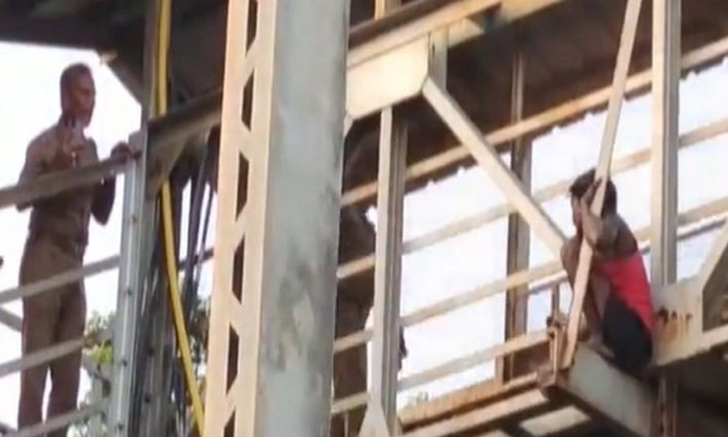 നടപ്പാലത്തിൽ ആത്മഹത്യ ഭീഷണി മുഴക്കി ഇതരസംസ്ഥാന തൊഴിലാളി; മദ്യക്കുപ്പി കാണിച്ച് പിടികൂടി പൊലീസ്