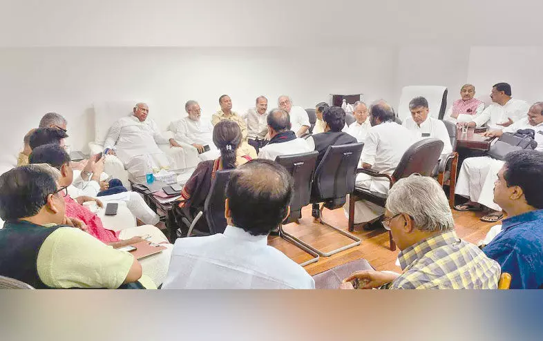 text_fieldsകോൺഗ്രസ് അധ്യക്ഷൻ മല്ലികാർജുൻ ഖാർഗെയുടെ പാർലമെന്റിലെ ചേംബറിൽ ‘ഇൻഡ്യ’ നേതാക്കൾ യോഗം ചേരുന്നു