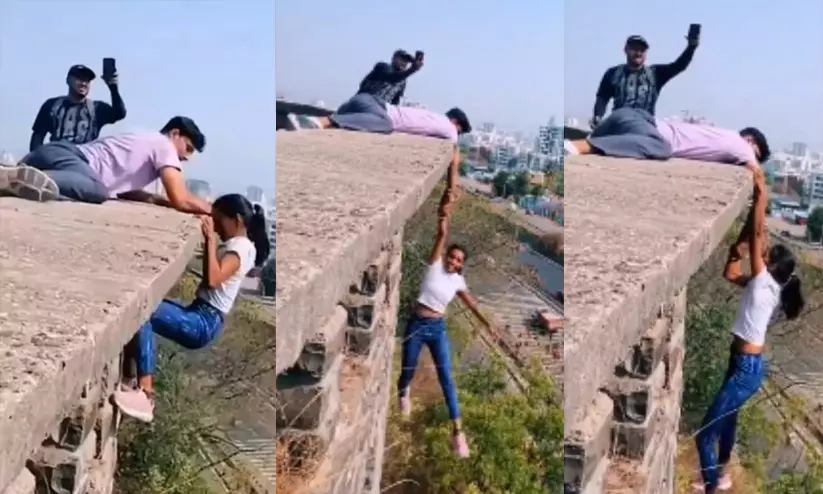 കെട്ടിടത്തിൽ തൂങ്ങി കിടന്ന് റീൽ ചിത്രീകരണം; പെൺകുട്ടിക്കും സുഹൃത്തുക്കൾക്കും എതിരെ കേസ്