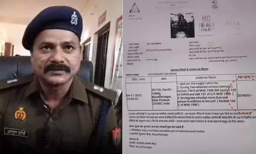 text_fieldsമുസാഫർനഗർ: ഹെൽമെറ്റ് ധരിക്കാത്തതിന് സ്കൂട്ടർ യാത്രക്കാരന് പിഴ ചുമത്തിയത് 21 ലക്ഷം രൂപ. ഉത്തർപ്രദേശിലെ മുസാഫർനഗർ ജില്ലയിലാണ് സംഭവം. ഒരുലക്ഷം വിലയുള്ള സ്കൂട്ടറിന് ലഭിച്ച പിഴയെന്ന രീതിയിൽ ചലാൻ സമൂഹമാധ്യമങ്ങളിൽ വൈറലായതിന് പിന്നാലെ, പൊലീസ് പിഴത്തുക 4,000 രൂപയായി തിരുത്തുകയായിരുന്നു.