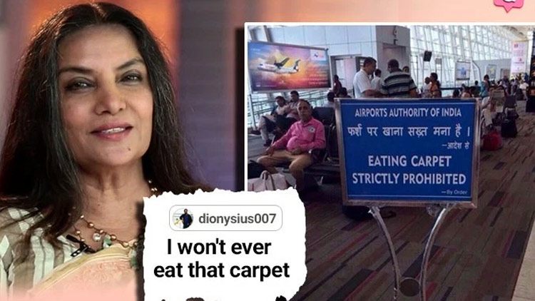 കാർപറ്റ് കഴിക്കുന്നത് കർശനമായി നിരോധിച്ചിരിക്കുന്നു; ചെന്നൈ എയർപോർട്ടിനെ ട്രോളി ഷബാന ആസ്മി
