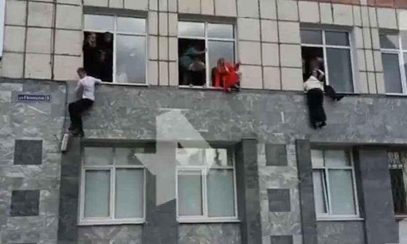 text_fieldsആക്രമണമുണ്ടായപ്പോൾ യൂനിവേഴ്സിറ്റി കെട്ടിടത്തിലെ ജനൽ വഴി ചാടി രക്ഷപ്പെടാൻ ശ്രമിക്കുന്ന വിദ്യാർഥികൾ (photo: RT News)