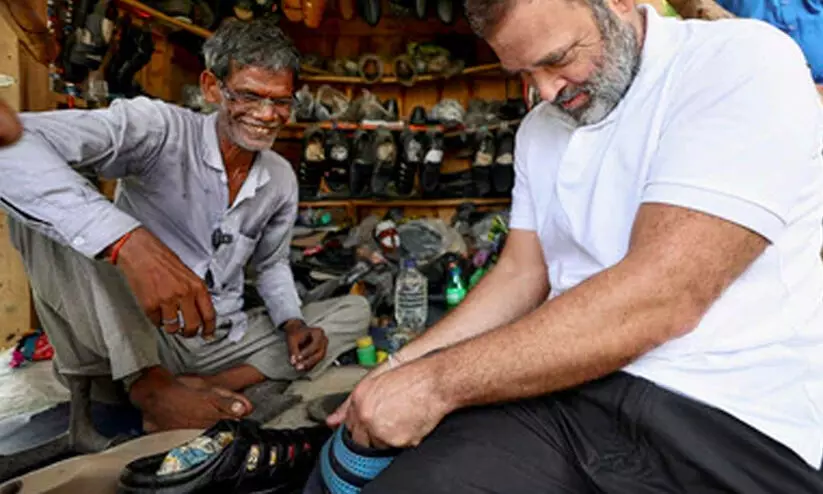 രാഹുൽ ഗാന്ധി തുന്നിയ ചെരിപ്പിന് രണ്ട് ലക്ഷം വിലപറഞ്ഞ് ആളുകൾ; വിൽക്കാതെ കച്ചവടക്കാരൻ