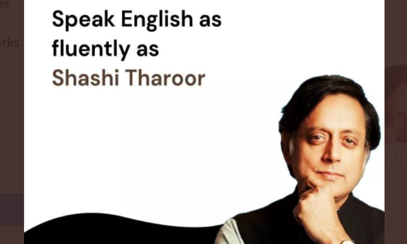 ഒഴുക്കൻ ഇംഗ്ലീഷ് പരസ്യവുമായി ബന്ധമില്ലെന്ന് തരൂർ; ഇംഗ്ലീഷ് സംസാരിക്കുന്നതിന്റെ രഹസ്യം വെളിപ്പെടുത്തണമെന്ന് സോഷ്യൽ മീഡിയ