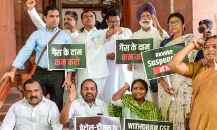 text_fieldsഅവശ്യ വസ്തുക്കളുടെ നികുതി വർധനവിനും പാർട്ടി എം.പിമാരുടെ സസ്പെൻഷനും എതിരെ കോൺഗ്രസ് എം.പിമാർ പ്രതിഷേധിക്കുന്നു