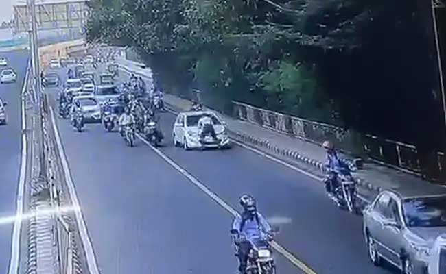 പുറത്തുവന്ന സി.സി.ടി വി ദൃശ്യങ്ങളിൽ മഹിപാൽ സിങ് കാറിെൻറ ബോണറ്റില് പിടിച്ചു തൂങ്ങിക്കിടക്കുന്നത് കാണാം. അതിനിടെ കാർ നിർത്താൻ ശ്രമിക്കവെ പൊലീസുകാരൻ റോഡിൽ തെറിച്ചുവീണു. തിരക്കേറിയ റോഡില് വീണ ഇദ്ദേഹം കാറിനടയില് പെടാതെ തലനാരിഴക്കാണ് രക്ഷപ്പെട്ടത്.
