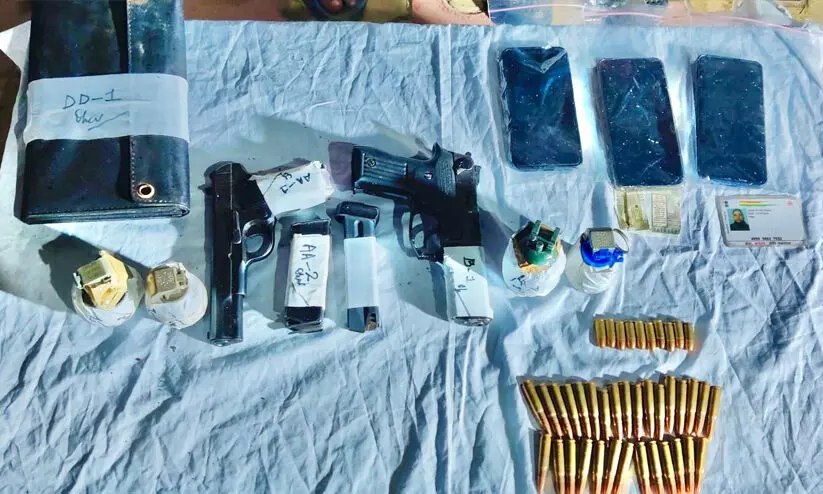 പിടിയിലായവരിൽ നിന്ന് രണ്ട് പിസ്റ്റലുകളും നാല് ഗ്രനേഡുകളും അടക്കം ആയുധശേഖരം കണ്ടെടുത്തു. സംഭവത്തിൽ എഫ്.ഐ.ആർ രജിസ്റ്റർ ചെയ്തതായിം അന്വേഷണം ആരംഭിച്ചതായും ഷോപ്പിയാൻ പൊലീസ് അറിയിച്ചു.