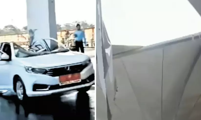 text_fieldsഭോപ്പാൽ: മധ്യപ്രദേശിലെ ജബൽപൂരിലും വിമാനത്താവളത്തിന്റെ മേൽക്കൂരയുടെ ഒരു ഭാഗം തകർന്നു വീണു. അപകടത്തിൽ നിന്നും തലനാരിഴക്കാണ് ആദായ നികുതി വകുപ്പ് ഉദ്യോഗസ്ഥർ രക്ഷപ്പെട്ടത്. ഇവർ എയർപോർട്ടിലേക്ക് വന്ന കാർ അപകടത്തിൽ തകർന്നു. മാസങ്ങൾക്ക് മുമ്പ് പ്രധാനമന്ത്രി നരേന്ദ്ര മോദി ഉദ്ഘാടനം ചെയ്ത വിമാനത്താവളത്തിന്റെ മേൽക്കൂരയാണ് തകർന്നത്.