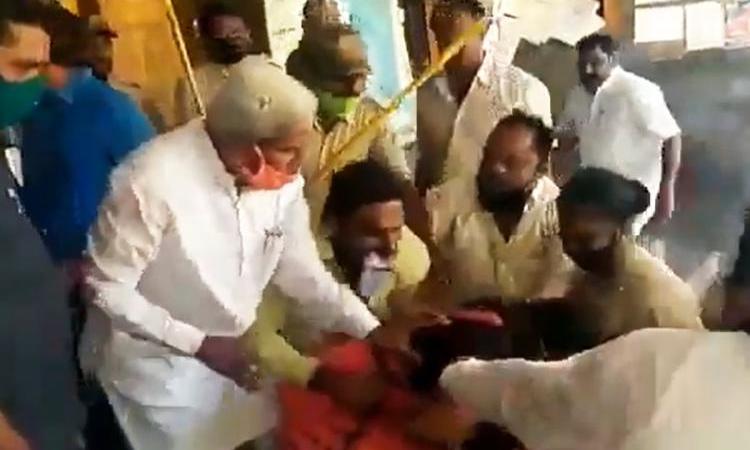 .@BJP4Karnataka MLA from Terdal manhandles & physically pushes a woman member of Mahalingpur municipal council in Bagalkote. Brazen assault by leader & his supporters after women members said they would vote for Congress in President & VP elections on Wednesday pic.twitter.com/sHymKyMr4S
