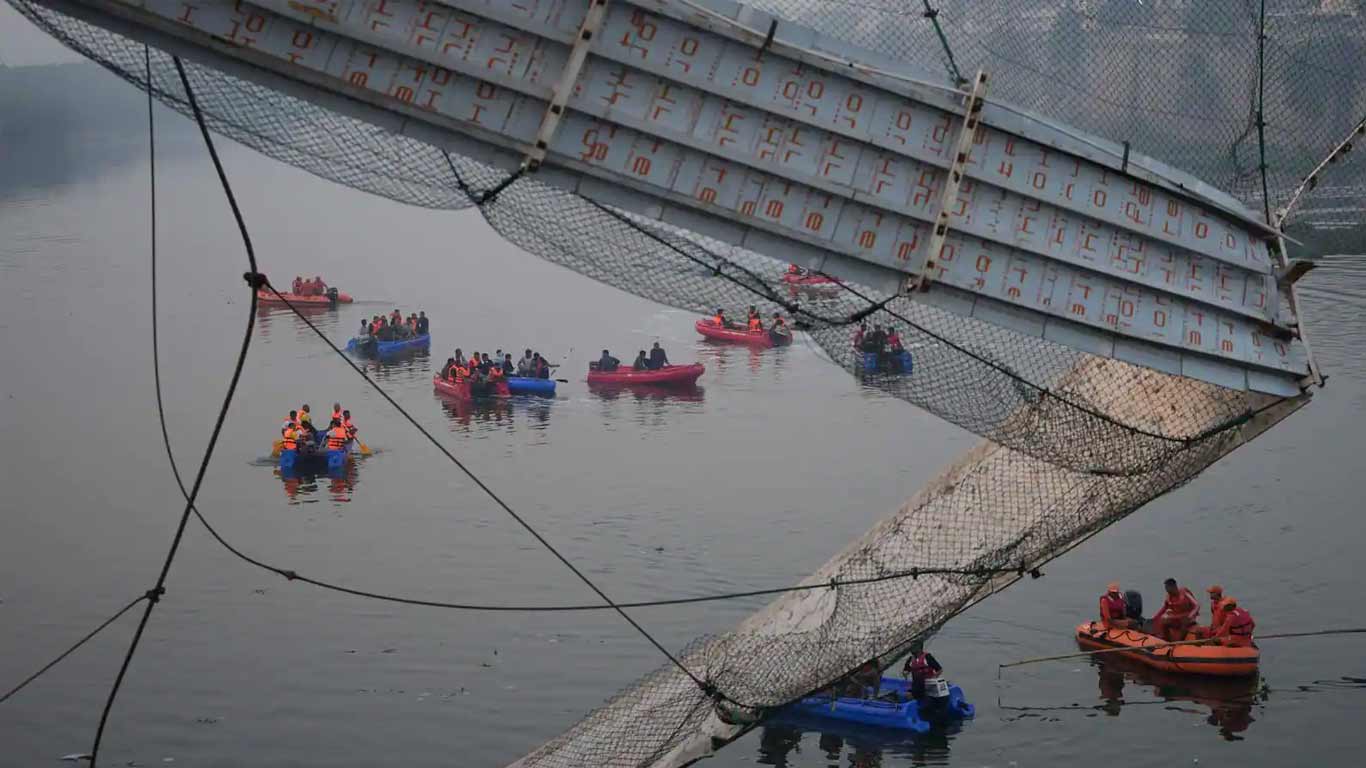 text_fieldsഅഹ്മദാബാദ്: ഗുജറാത്തിലെ മോർബി പാലം ദുരന്തത്തിന്റെ ആഘാതത്തിൽനിന്ന് രാജ്യം ഇനിയും മുക്തി നേടിയിട്ടില്ല. 150 ഓളം ജീവനുകളാണ് നിമിഷ നേരം കൊണ്ട് മച്ചു നദിയിൽ പൊലിഞ്ഞത്. ടെൻഡർ പോലും നൽകാതെയാണ് തൂക്കുപാലം നവീകരണ കരാർ ഗുജറാത്തിലെ അജന്ത ഒറേവ ഗ്രൂപ്പിന് നൽകിയതെന്ന വിവരങ്ങളും പുറത്തുവരുന്നു.