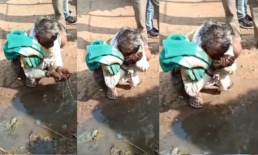 മലിനജലം കുടിച്ചാൽ 2000 രൂപ നൽകാമെന്ന് യുവാക്കൾ, അനുസരിച്ച് വയോധികൻ -VIDEO