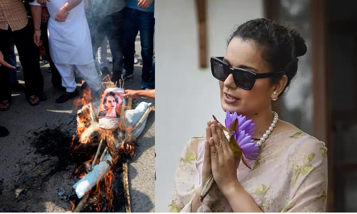ഞങ്ങൾ തീവ്രവാദികളല്ല, കങ്കണയുടെ കോലം കത്തിച്ച് കർഷക പ്രതിഷേധം; സിനിമകൾ ബഹിഷ്കരിക്കാനും ആഹ്വാനം
