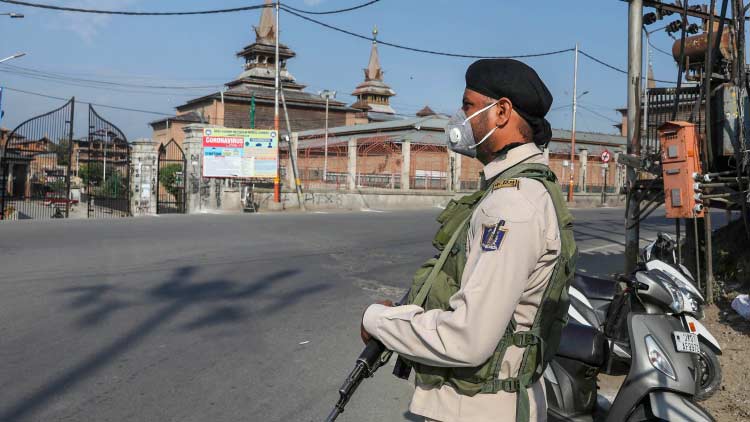 text_fieldsകർഫ്യൂ പ്രഖ്യാപിച്ച ശ്രീനഗറിൽ കാവൽ നിൽക്കുന്ന സി.ആർ.പി.എഫ് ജവാൻ